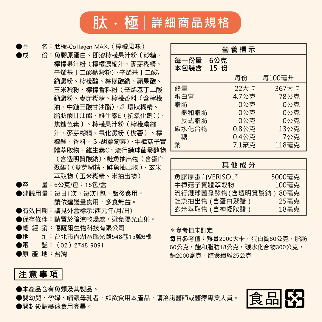 噶薩爾 肽極COLLAGEN MAX. 牛樟膠原飲(6g/包,15包/盒)